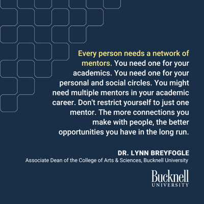 I want 100% of our first-year students to have a mentor. We've done pretty well at Bucknell with that, and in the last few years, we’ve been at 85%. But that's a B on the grading scale. I won't be happy until we get everyone in the program.